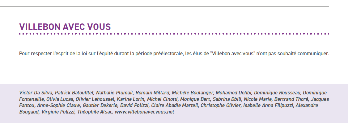 Retrouvez sur cette page, l’ensemble des publications du groupe “Villebon Avec Vous” parues dans le magazine municipal Vivre à Villebon en rubrique Expressions.