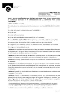 Arrêtés permanents: ARR-2025-509 Arrêté relatif aux dégradations légères, tags, graffitis et autres inscriptions, à l’affichage sauvage et à l’intervention de la commune pour leurs enlèvements Télécharger (403,6 ko)