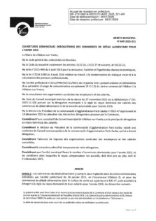 Arrêtés permanents: ARR-2025-521- Ouvertures dominicales dérogatoires des commerces de détail alimentaires pour l’année 2026 Télécharger (1,8 Mo)