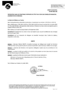 Arrêtés temporaires: ARR-2025-292 Délégation dans les fonctions d’officier de l’état-civil pour un conseiller municipal (célébration de mariage) Télécharger (731,2 ko)