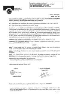 Arrêtés temporaires: ARR-2025-00 9 Nomination de Mme DE NARDI en qualité d’agent délégué pour mener les enquêtes dans le cadre de l’instruction d’un enfant par la famille Télécharger (376,5 ko)