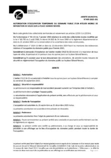 Arrêtés temporaires: ARR-2025-391 Autorisation d’occupation temporaire du domaine public d’un atelier mobile de réparation de vélos sur la place G. Nevers Télécharger (351,6 ko)