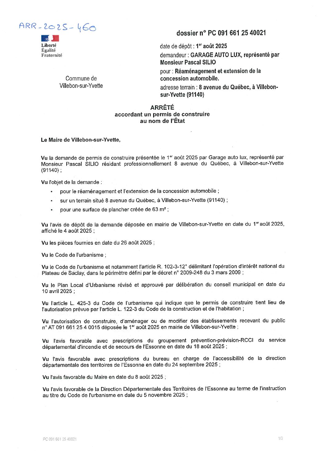 ARR-2025-460 Arrêté accordant un permis de construire au nom de l'Etat 8 AV du Québec