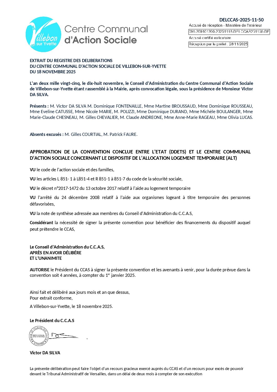 Centre Communal d'Action Sociale (CCAS):DELCCAS-2025-11-50 Approbation de la convention conclue entre l’État (DDETS) et le Centre Communal d’Action Sociale concernant le dispositif de l’Allocation Logement Temporaire (ALT)