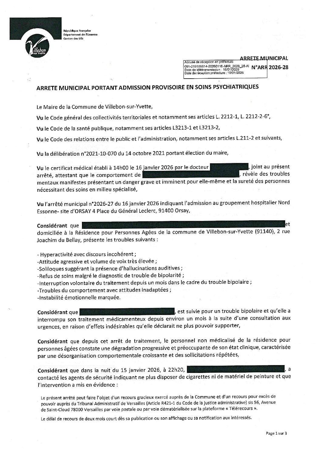 ARR-2026-028 Arrêté municipal portant admission provisoire en soins psychiatriques