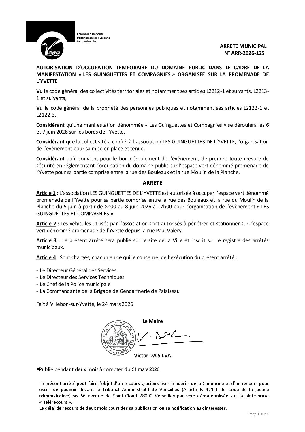 ARR-2026-125 Autorisation d'occupation temporaire les guinguettes et compagnies