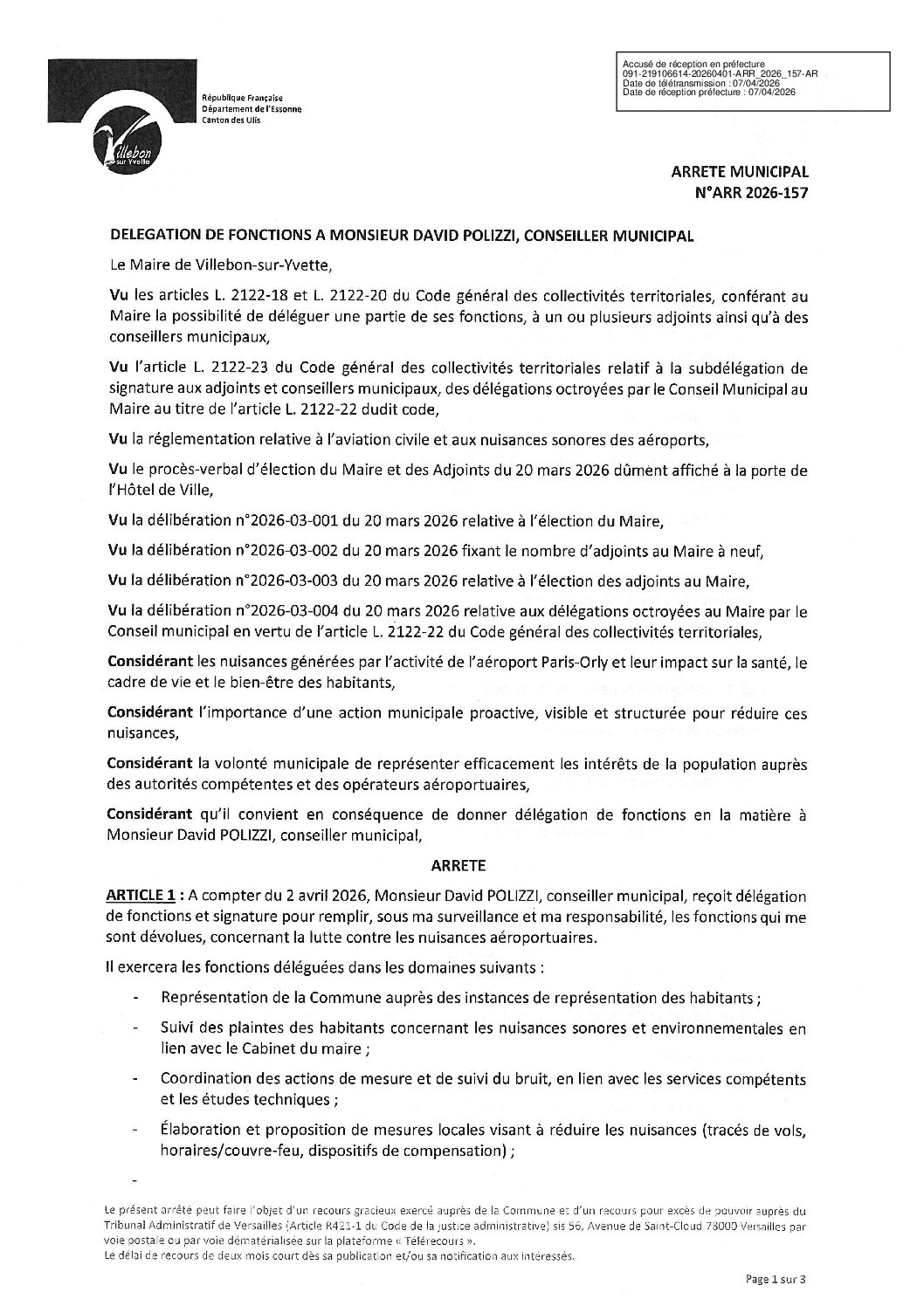 ARR-2026-157 Délégation de fonctions à M. David POLIZZI, conseiller municipal