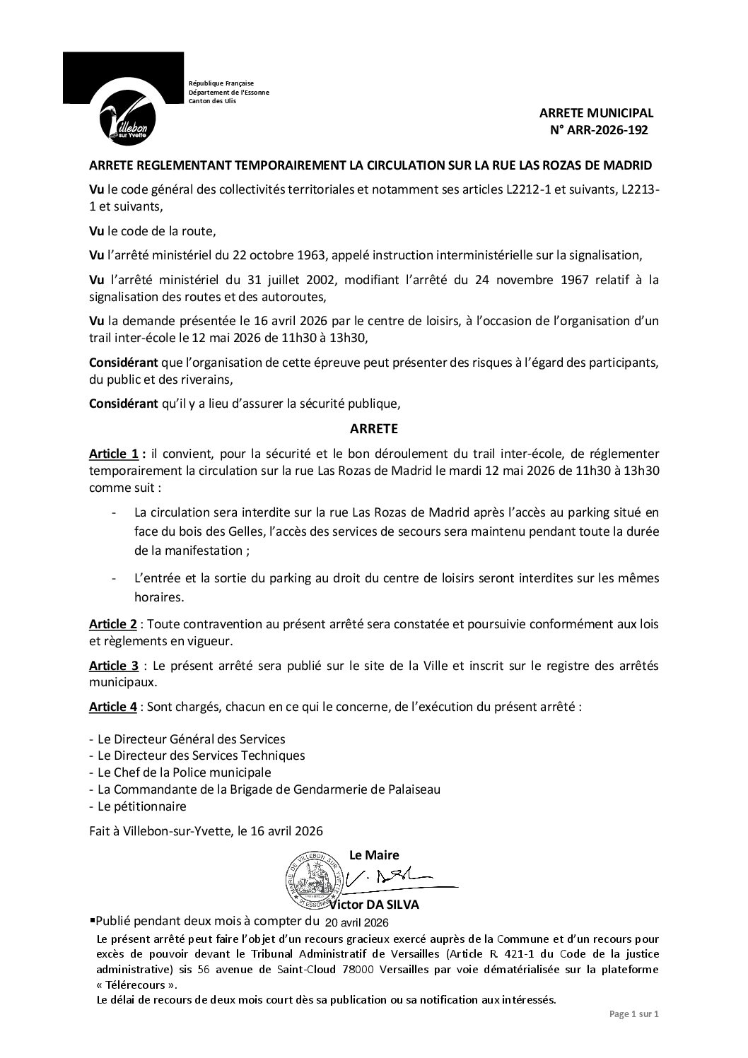 ARR-2026-192 Arrêté réglementant temporairement la circulation sur la rue las Rozas de Madrid