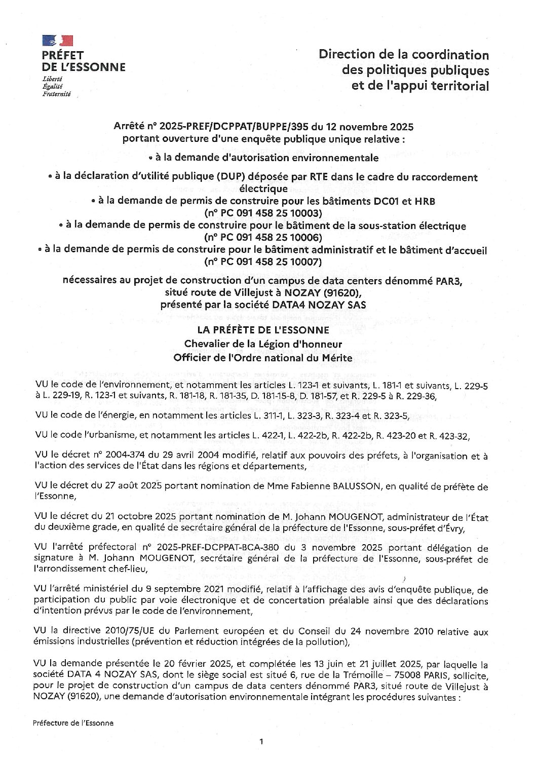 Arrêté n°2025-PREF-DCPPAT-BUPPE-395 portant ouverture enquête publique