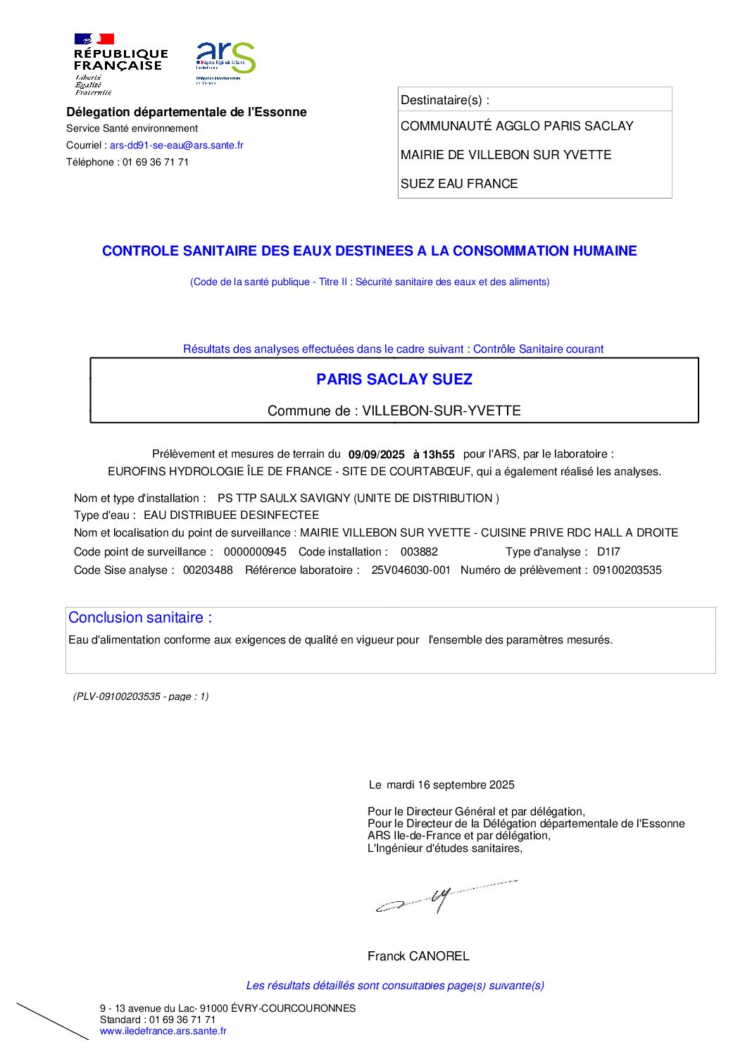 Contrôle sanitaire des eaux (ARS)