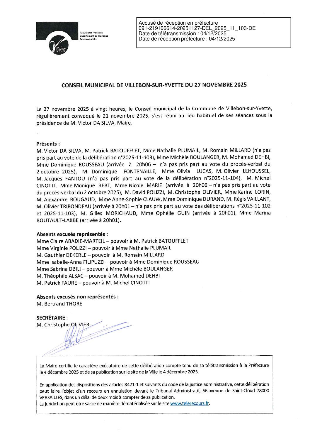 DEL-2025-11-103 Autorisation donnée à Monsieur le Maire de signer une convention d’occupation temporaire du domaine public avec la société SEQENS SA d’HLM pour la réalisation d’une rampe d’accès pour personnes à mobilité réduite au 7 rue de Palaiseau
