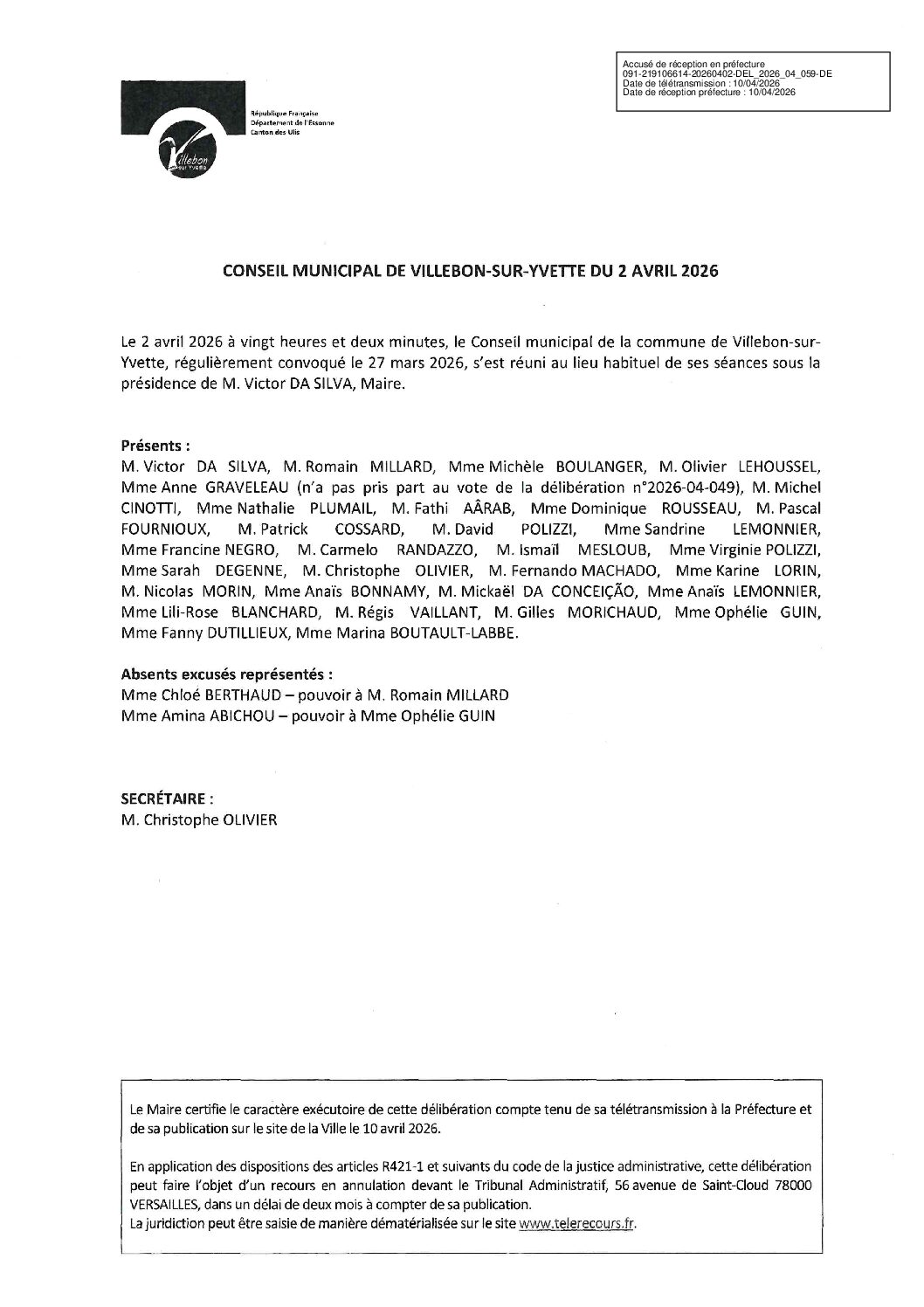 Délibérations:DEL-2026-04-059 Avis préalable à l’ouverture d’un établissement d’accueil de jeunes enfants de type micro-crèche (crèche Villebon 2, lot n°3) au 9 avenue de Norvège à Villebon-sur-Yvette