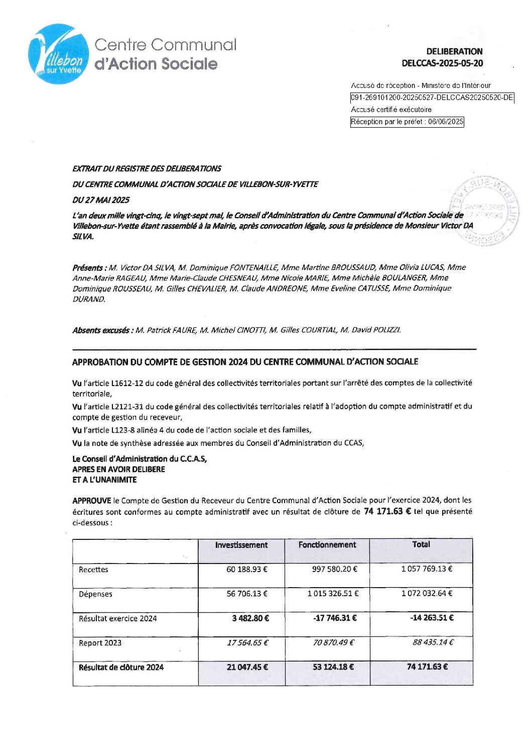 DELCCAS-2025-05-20 Approbation du compte de gestion 2024
